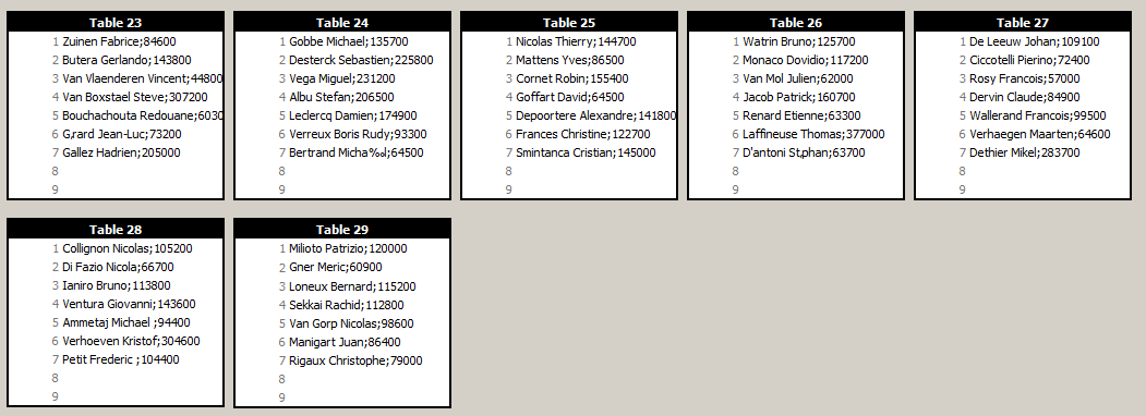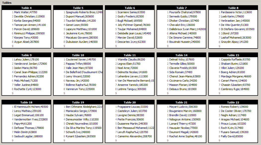 169 joueurs reviendront donc pour Day 2 et il restera tout le Level 9 – 1k/2k-300 pour rejoindre le field avec 25 blinds !