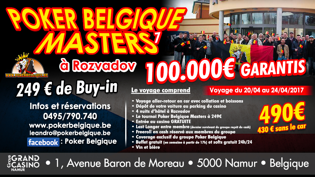 – Le tournoi Poker Belgique masters à 249 €