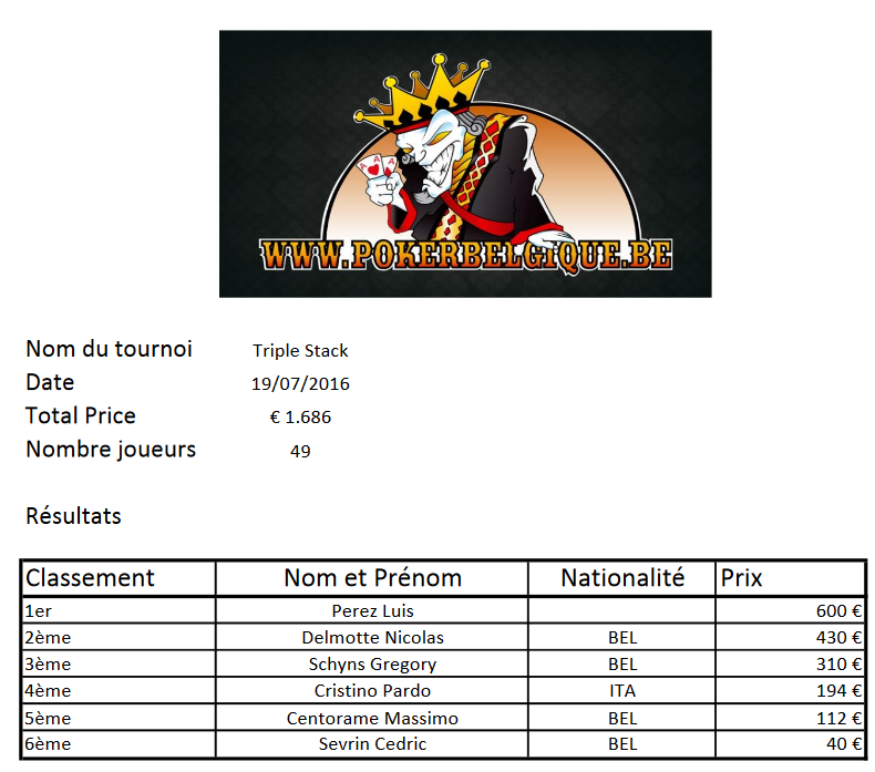 - tout d’abord, n’oubliez pas, si vous êtes qualifiés ou possédez tout du moins un tickets éligible, de vous rendre à la finale pour des STEP WaSOP ! Vous y jouerez votre chance de vous qualifiez pour ce superbe festival tant apprécié ! Le tout se joue à la Poker Room de Soignies et commencera sur le coup de 11h00.