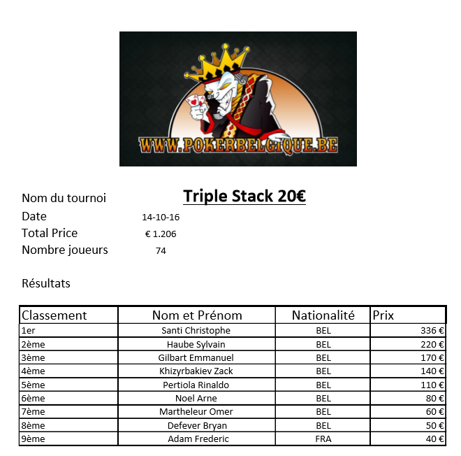 - dès 19h00, vous pourrez tenter votre chance dans un Triple stack du feu de dieu vous proposant 30.000 jetons pour 20€, des blinds de 20 minutes et 6 niveaux d’inscriptions tardives !