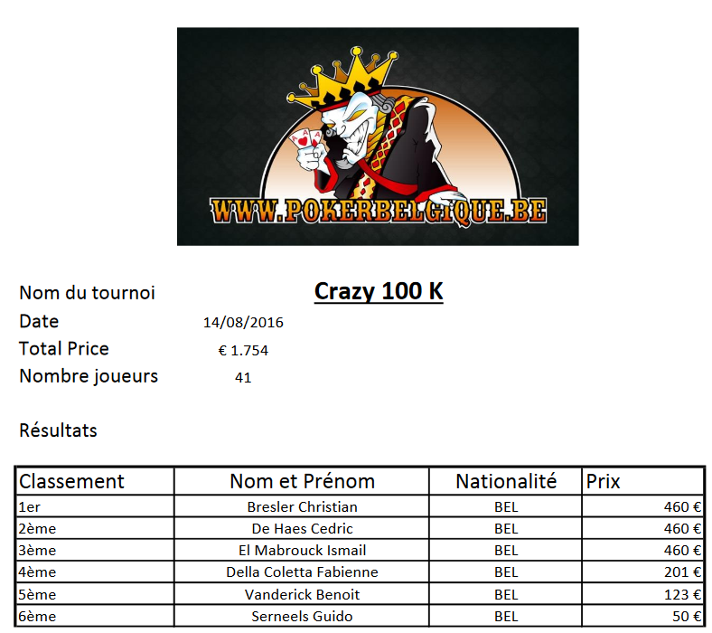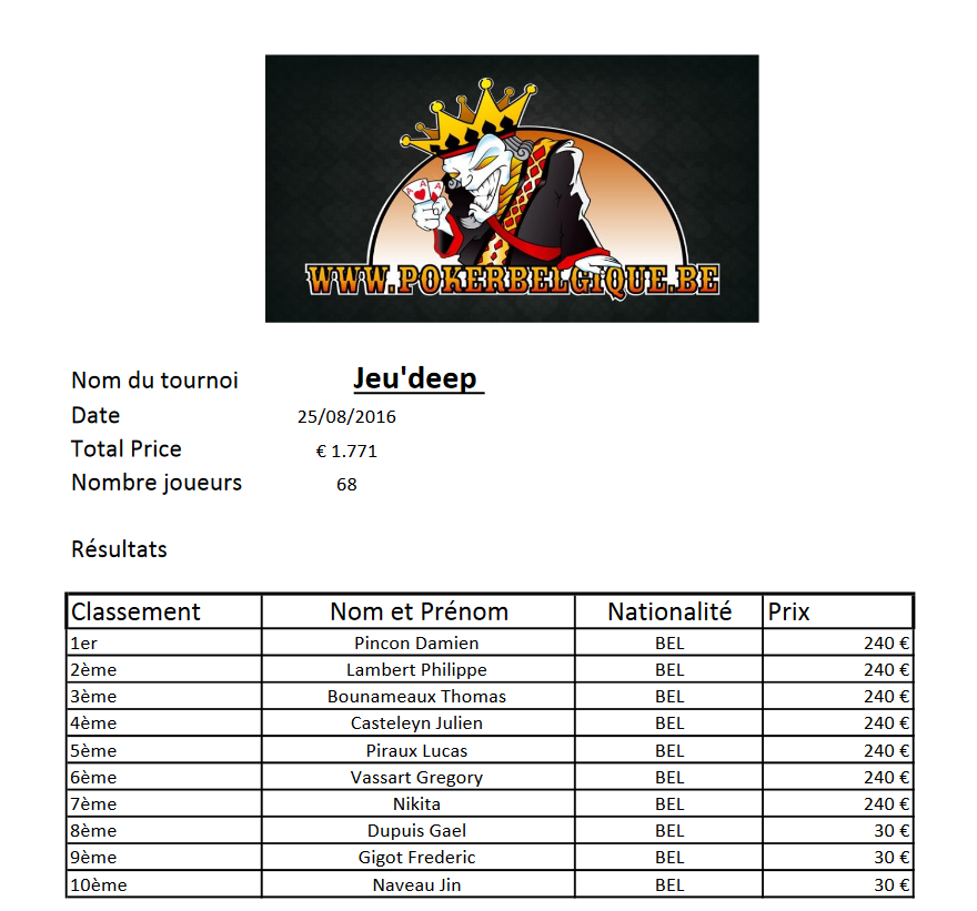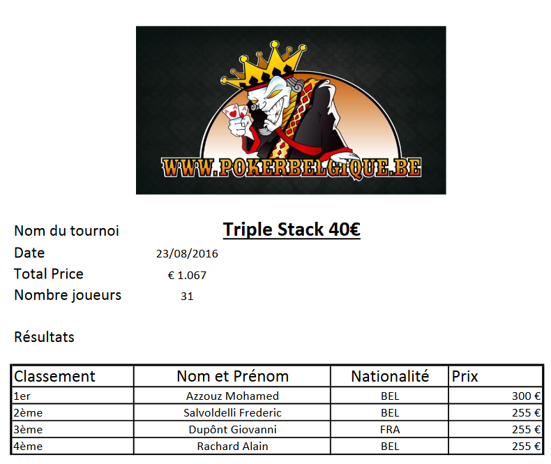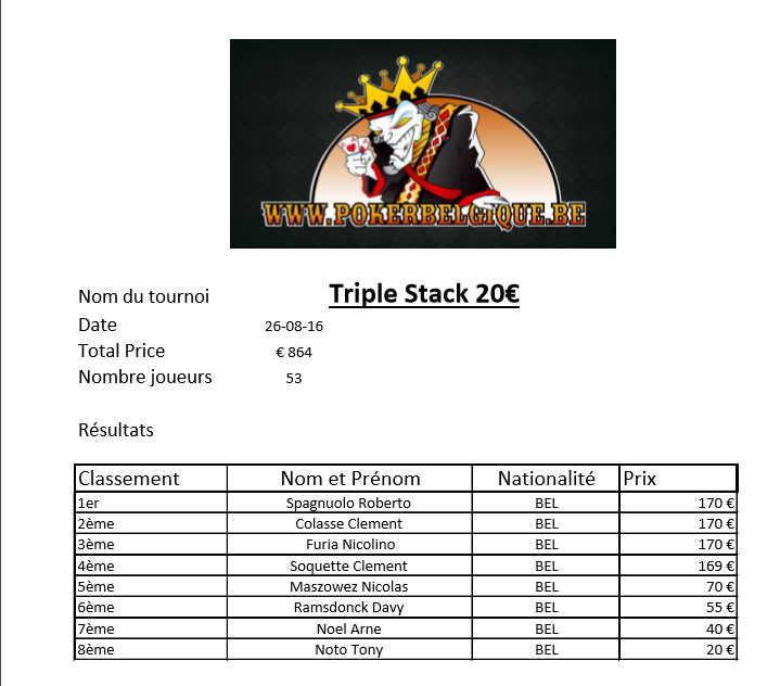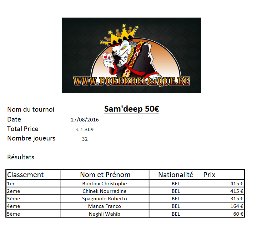 Bref, rendez-vous à la Poker Room de Namur dès 19h00 pour prendre part à cet Event traditionnel des lundis pokerbelgiciens.