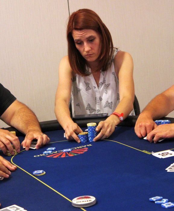 Peggy Gambetti fait ensuite tapis au Cutoff pour 154 000 jetons… et c’est Giovanni Giacometti qui paye en petite blinde avec As Roi ! Peggy retourne les Dix et double à près de 400 000 jetons, une misère à ce moment mais un beau stack pour le Jour 2.