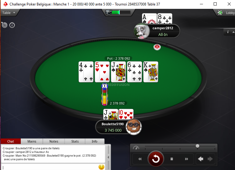 Les blindes vont passer à 200 – 500 (500) pour le troisième level et ils sont donc 37 en table pour 38 entrants…