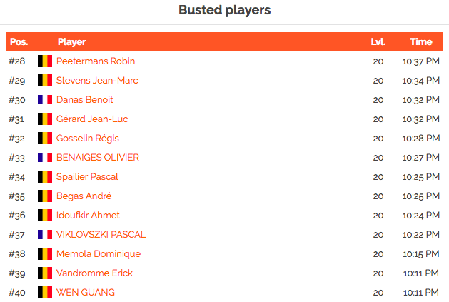 Plus que 27 joueurs après la fin du Level 20. Les blinds vont passer à 30k/60k-60k avec une moyenne à 703.704. Ci-dessous, les stacks des 5 leaders ainsi que la liste des joueurs bustos dans l’argent jusqu’ici. Retrouvez tout le payout ICI.