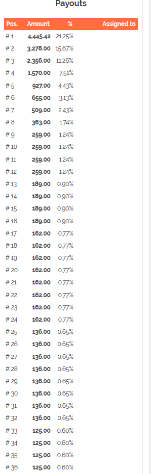 En ce qui concerne le pay out, il y aura au total 55 ITM pour des montants de base se portant à 104€ et une victoire s’élevant à 4.445€ !