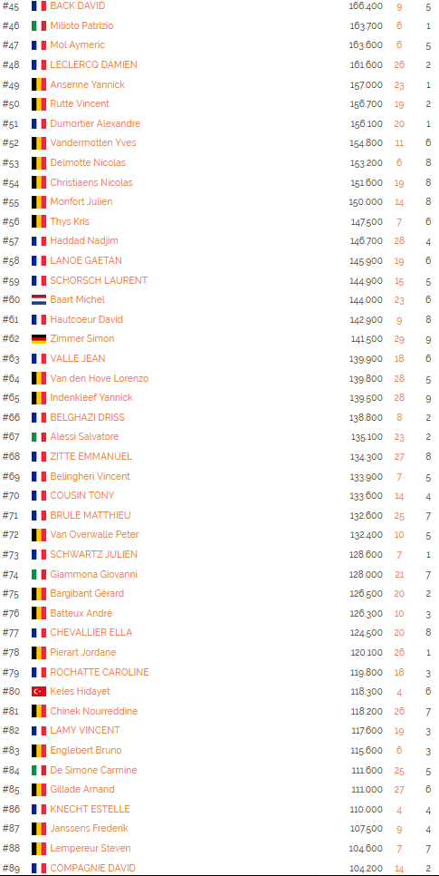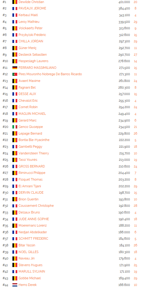 Aussi, au niveau des stacks en jeu, le leader incontesté et incontestable n’est autre que Christian Dewilde qui reviendra avec 401.000 jetons et une chance déjà non négligeable d’atteindre les ITM. Entre gestion et effet de levier, il devra choisir avec parcimonie ses actions à la table ! En seconde position, avec un stack non moins négligeable, nous retrouvons Jérôme Paveaux qui affiche un stack de 384.400 jetons. Maêl Kerbaul ferme le podium avec un beau chiffre également puisque son stack de départ pour ce day 2 sera de 343.100 jetons !