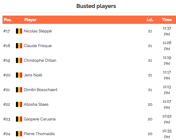 Voici les bustos de ce palier qui repartent tous avec un gain de €134 alors qu’une nouvelle pause arrive à la fin du Level 21 – 30k/60k-5k. La moyenne est à 1.156.250 et Vincent Peeters est toujours en tête avec 2.9M.