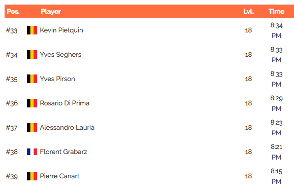 94off, belle main! Les leaders en fin de Level 16