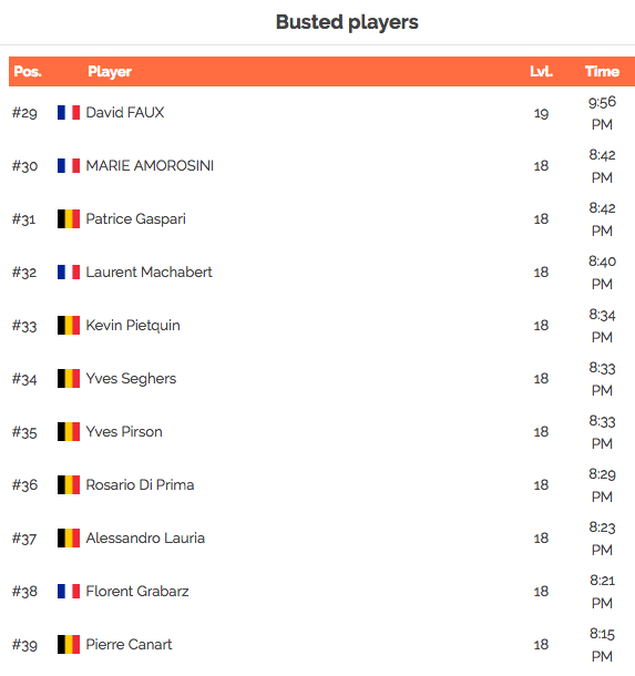Nous passons à €134 de payout après l’élimination d’Anthony Antuna [photo] en 26ème et de Cédric Philippart en 25ème place pour le dernier prix à €119.