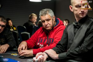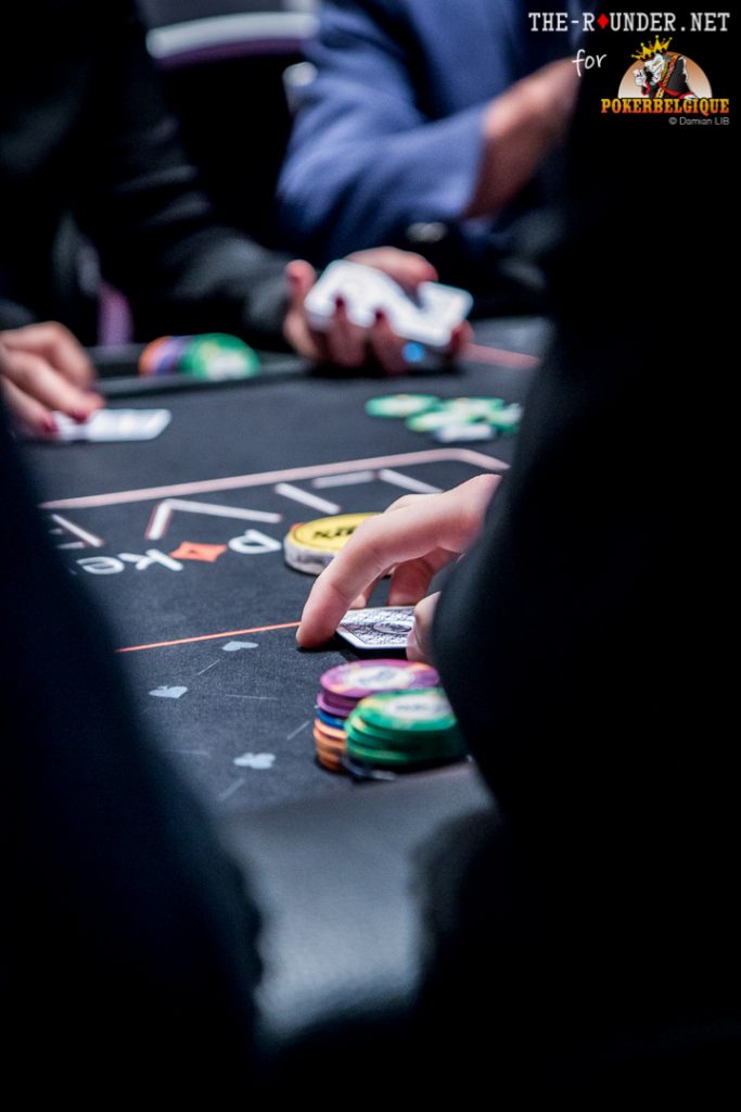 Alors que l’on fait un tour d’horizon des stack, notre ami Olivier Baeten cache son stack… Il ne lui reste que 13K et désigne de la main Ming avec un beau 45K devant lui…