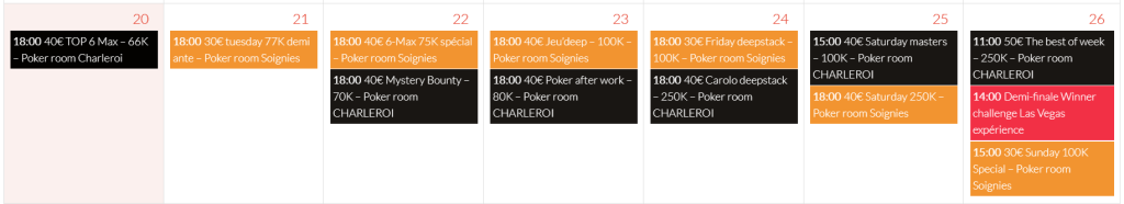 Ce Mercredi à Poker Belgique, nous vous proposons 2 tournois!!! L’un à Soignies, l’autre dans notre toute nouvelle Poker Room de Charleroi à Fontaine-L’Evêque :