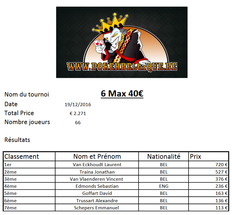 6-max- 40€ – 19/12/2016 – Poker Room Namur [themoneytizer id= »8833-1″] [themoneytizer id= »8833-1″] Total Price: 2.271€ Nombre joueurs: 66 ITM: 7 Category: Décembre, Namur, Special Event 0 0 facebook twitterbird linkedin googleplus pinterest Related Projects ← Previous ProjectNext Project → Résultats The Monster – Main Event 100€ du 05/11/16 – Poker Room NamurFind out more →Short Handed Festival – Crazy Lift 40€ du 18/10/16Find out more →BpokP High roller- 100€-18/11/2016 – Poker Room NamurFind out more →Jeu’deep Side Event 50K 02/02/2017Find out more →High roller 03-03-2017 – Poker room NamurFind out more →Jeu’Deep Spécial – 50€ – 29/12/2016 – Poker Room NamurFind out more →30-12-2018 Main event KillerFind out more →03-11-18 High roller Monster 10.000€ Garantis – poker room NamurFind out more →