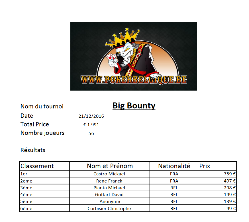 Big Bounty- 40€ – 21/12/2016 – Poker Room Namur [themoneytizer id= »8833-1″] [themoneytizer id= »8833-1″] Total Price: 1.991€ Nombre joueurs: 56 ITM: 6 Category: Décembre, Namur, Special Event 0 0 facebook twitterbird linkedin googleplus pinterest Related Projects ← Previous ProjectNext Project → Jeu’Deep Spécial – 50€ – 29/12/2016 – Poker Room NamurFind out more →30-12-2018 Main event KillerFind out more →High roller Big one – 07/01/2017 – Poker Room NamurFind out more →Jeu’Deep spécial- 50€ – 22/12/2016 – Poker Room NamurFind out more →High roller PCC 04/02/2017 – poker room NamurFind out more →High roller SHF 18/01/2017 – Poker Room NamurFind out more →BpokP High roller- 100€-18/11/2016 – Poker Room NamurFind out more →50K PCC Main event 05/02/2017 – poker room NamurFind out more →