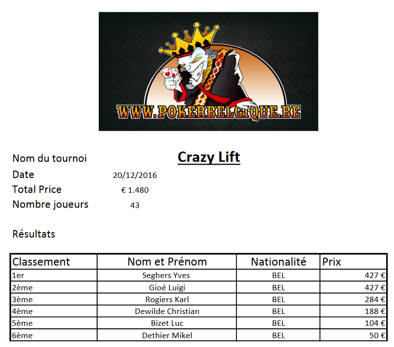 Crazy lift- 40€ – 20/12/2016 – Poker Room Namur [themoneytizer id= »8833-1″] [themoneytizer id= »8833-1″] Total Price: 1.480€ Nombre joueurs: 43 ITM: 6 Category: Décembre, Namur, Special Event 0 0 facebook twitterbird linkedin googleplus pinterest Related Projects ← Previous ProjectNext Project → Short Handes Festival – Warm up 6 max du 17/10/16Find out more →20-04-2017 Freeroll PB Masters RozvadovFind out more →Big Bounty- 40€ – 21/12/2016 – Poker Room NamurFind out more →Main event Short Handed Festival 22/01/2017Find out more →High roller PCC 04/02/2017 – poker room NamurFind out more →24-09-2017 – Main Event Pcc Festival – poker room NamurFind out more →Killer- 50€ – 18/12/2016 – Poker Room NamurFind out more →30-12-2018 Main event KillerFind out more →