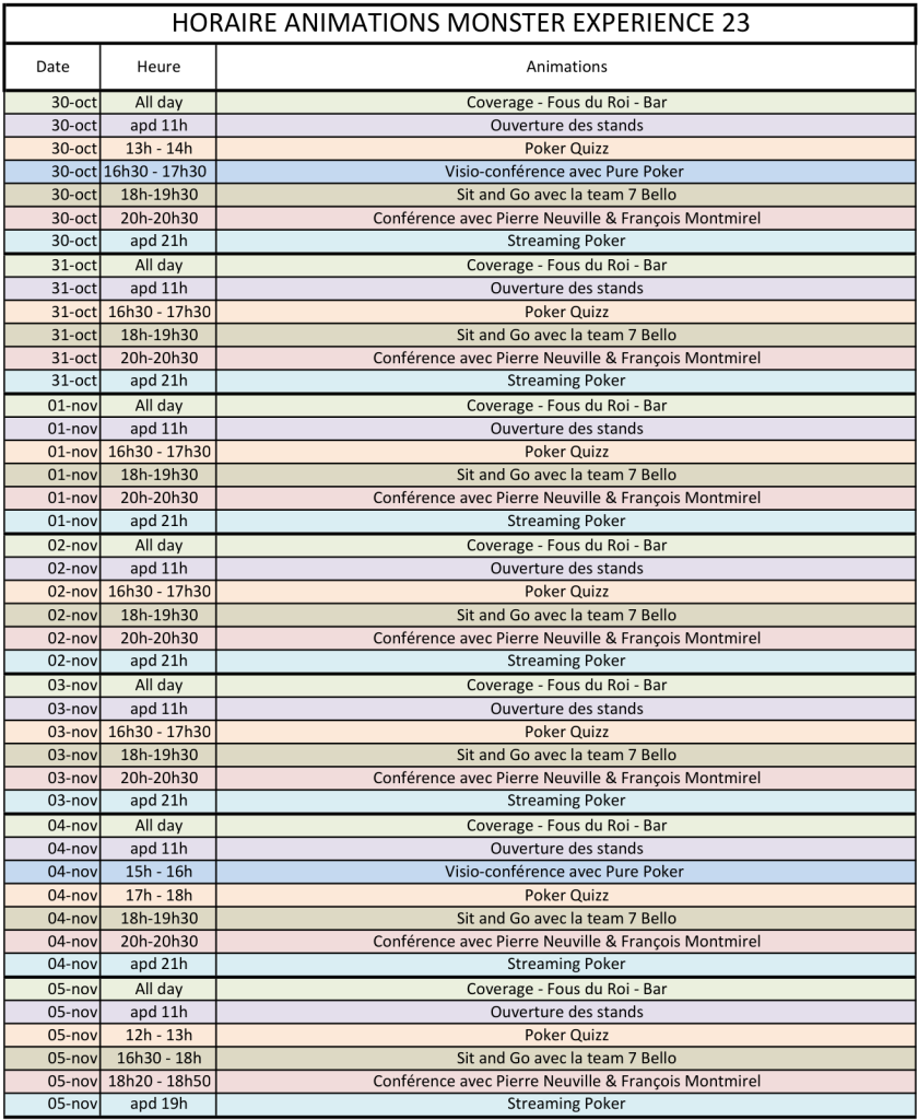 Le Monster Experience est l’endroit où le poker amateur prend vie, avec une offre complète d’animations, de stands et d’opportunités pour tous les participants. Réserve ta place dès maintenant et prépare-toi à vivre une expérience de poker exceptionnelle.